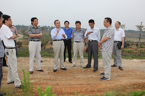 聂主席一行察看了刚刚建成的千亩油茶基地、幼苗培养基地和景观苗木生产基地,听取了公司负责人和技术人员的情况介绍。聂主席对该公司在短时间内取得的成绩给予了充分肯定,并指出:油茶种植前期投入大,见效慢,但长源公司能够积极采取有效措施,在油茶地间隙套种红叶石楠、金叶女贞、红花继木等景观苗木,短期收益率高,采取这种“以短养长”的方式非常好。对于公司下一步发展,聂主席要求:一要加强技术人员的培养,加大技术培训力度,走科技与生产相结合的道路;二要明确发展目标,多措并举,把公司进一步做大做强,力争做成现代农业龙头企业;三要以点带面,支持并带动我县更多的林农积极参与,公司要在技术、种苗和市场销售等方面给予农户更大的支持和更好的服务,从而扩大生产规模,提高公司经济效益和社会效益。
